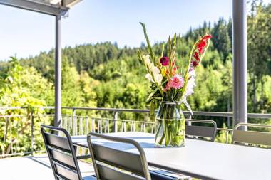 Guests can enjoy hiking and skiing nearby, as well as relax in the garden.