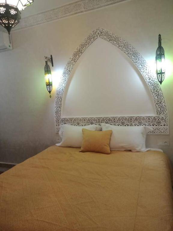 Riad Arbre Bleu offers a range of amenities including a terrace with sun beds, a swimming pool, air-conditioned rooms, free Wi-Fi, and massages. There is also a living room with a fireplace for relaxation.