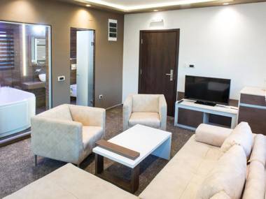Each room features a flat-screen TV, seating area, mini-bar, bathrobes, slippers, hairdryer, and free toiletries.
