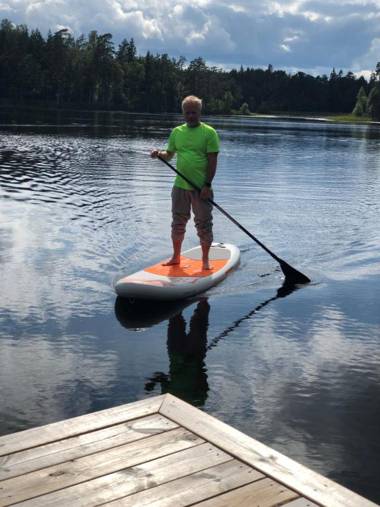 Stuga Holmasjön offers a private pier, bathing area, furnished patio, fully equipped kitchen, seating area with fireplace, flat-screen TV, garden with BBQ facilities, and sauna.