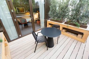 Yes, the hotel features the Urban Meadow restaurant, offering stylish fare with a focus on grab-and-go items, sharing platters, and smaller grazing dishes. Guests can also dine outdoors on a spacious patio.